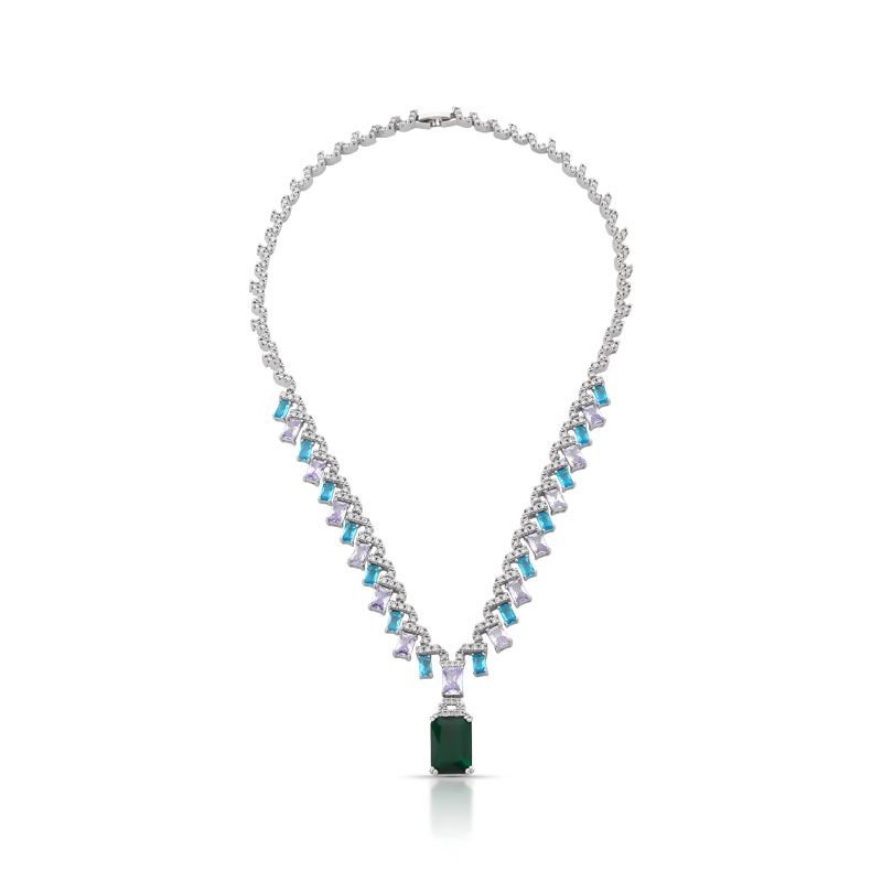 CONJUNTO COLAR E BRINCO FESTA COM PEDRAS CRAVEJADAS ZIRCÔNIAS COLORIDAS