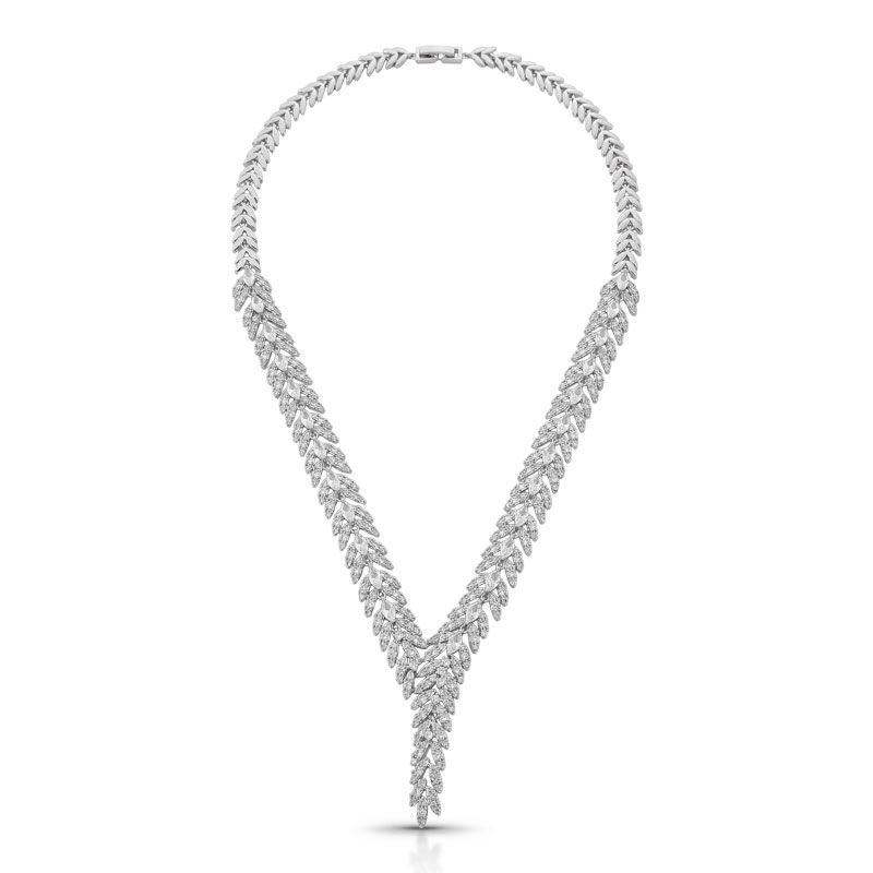 CONJUNTO COLAR E BRINCO RAMO DE FOLHAS CRAVEJADOS COM ZIRCÔNIAS