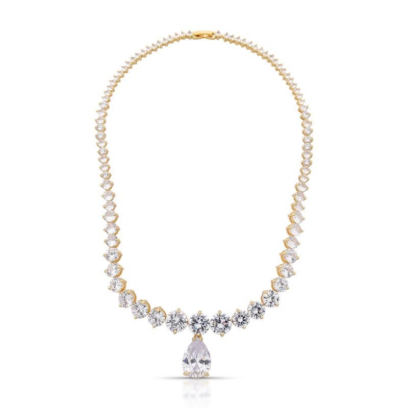 CONJUNTO COLAR E BRINCO COM PINGENTE GOTA CRAVEJADOS COM ZIRCÔNIAS TRANSPARENTES