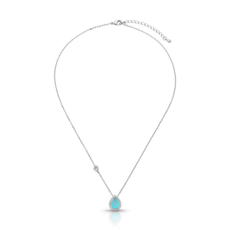 CONJUNTO COLAR ELOS FINOS PINGENTE GOTA PEDRA AZUL CRAVEJADOS COM ZIRCÔNIAS E BRINCO FORMATO GOTA