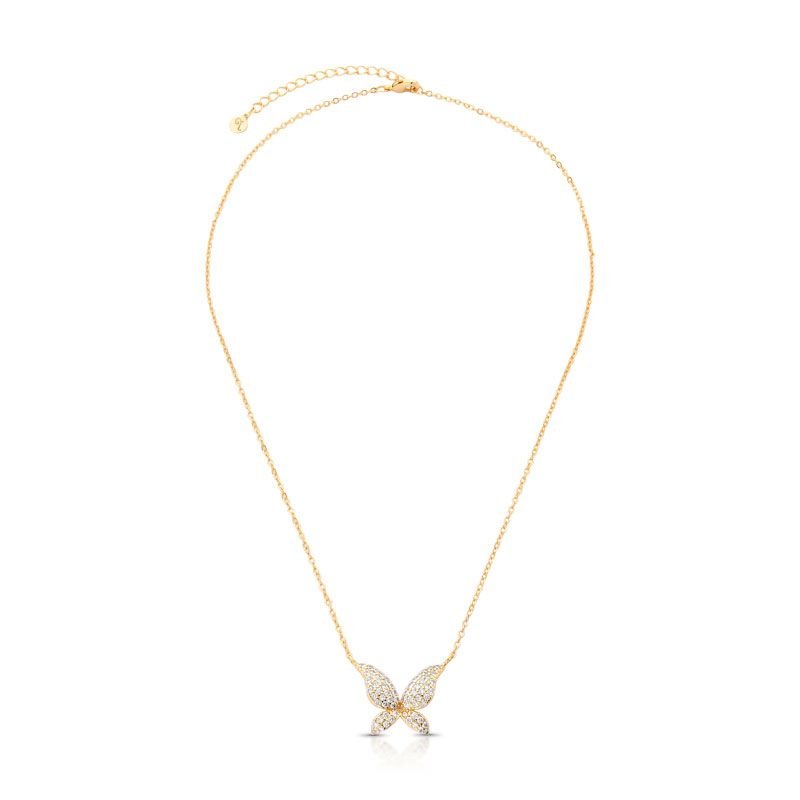 CONJUNTO COLAR ELOS FINOS PINGENTE BORBOLETA E BRINCO BORBOLETA