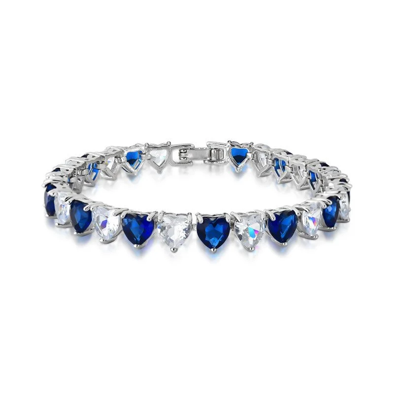 PULSEIRA RIVIERA COM PEDRAS CRAVEJADAS ZIRCÔNIAS FORMATO CORAÇÃO BANHO DE RÓDIO